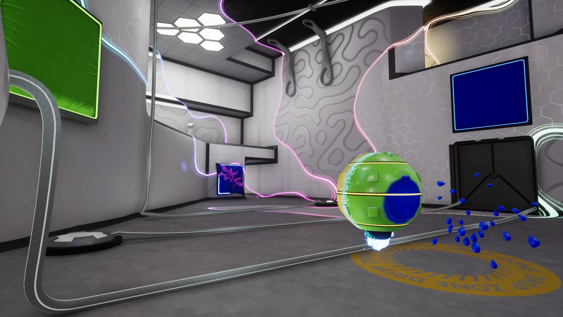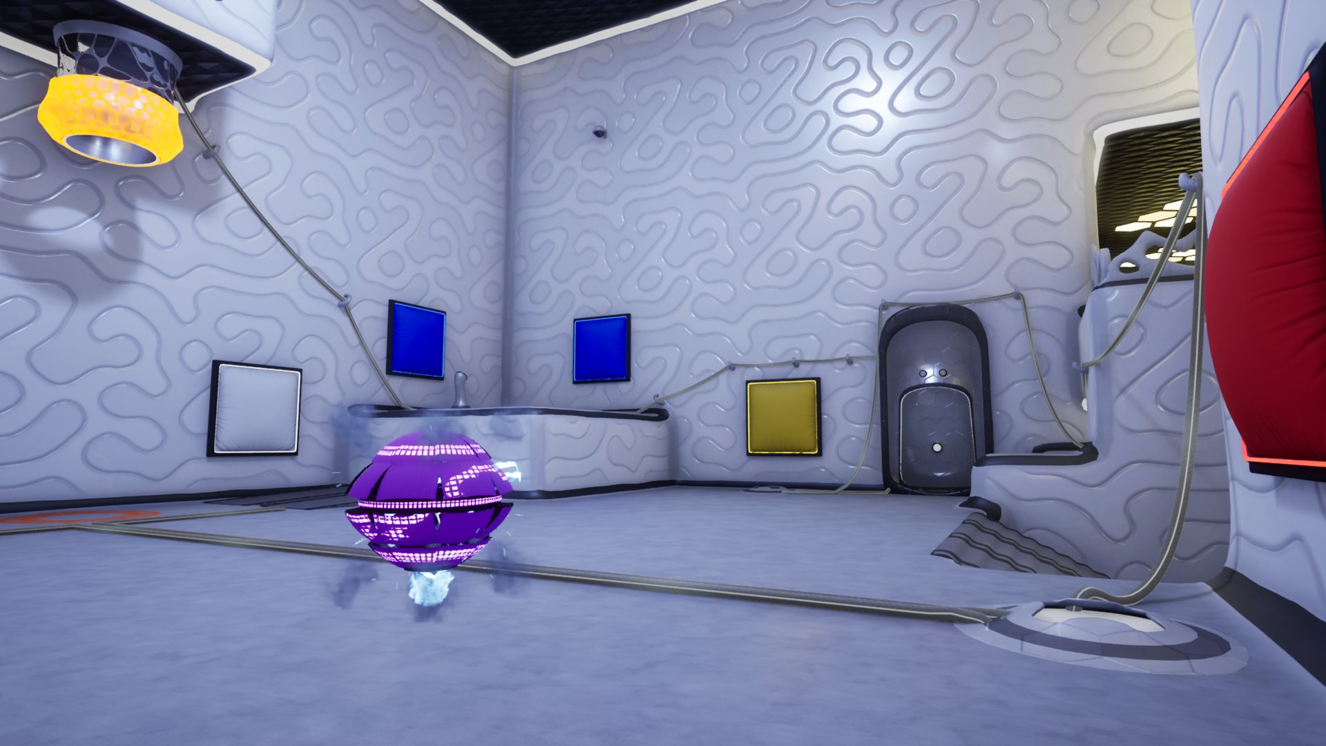 At ChromaTec, colors are magnets! Well, not exactly. Magnetoid Chromatism — a physical property of the pandimensional realm — is a bit more complex than that. In layperson’s terms: Walls attract objects of the same color. All kinds of objects! Like large boxes. Or small boxes. Or large crates. Or super-safe, friendly, decidedly non-murderous WorkerDroids*. (list not exhaustive) Use your refined painting- and color-mixing skills to voluntarily solve intricate puzzles on the ChromaTec Testing Track for ChromaGun Research Purposes, Mark II — aka ChromaGun 2. *WorkerDroids may be less non-murderous than previously implied.