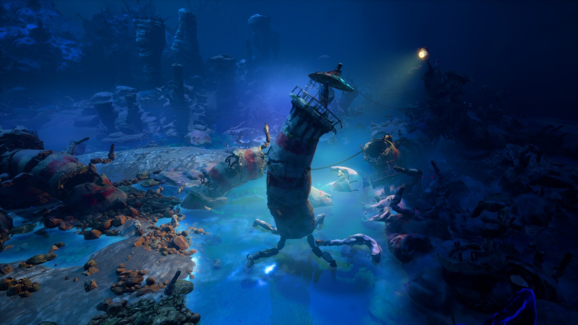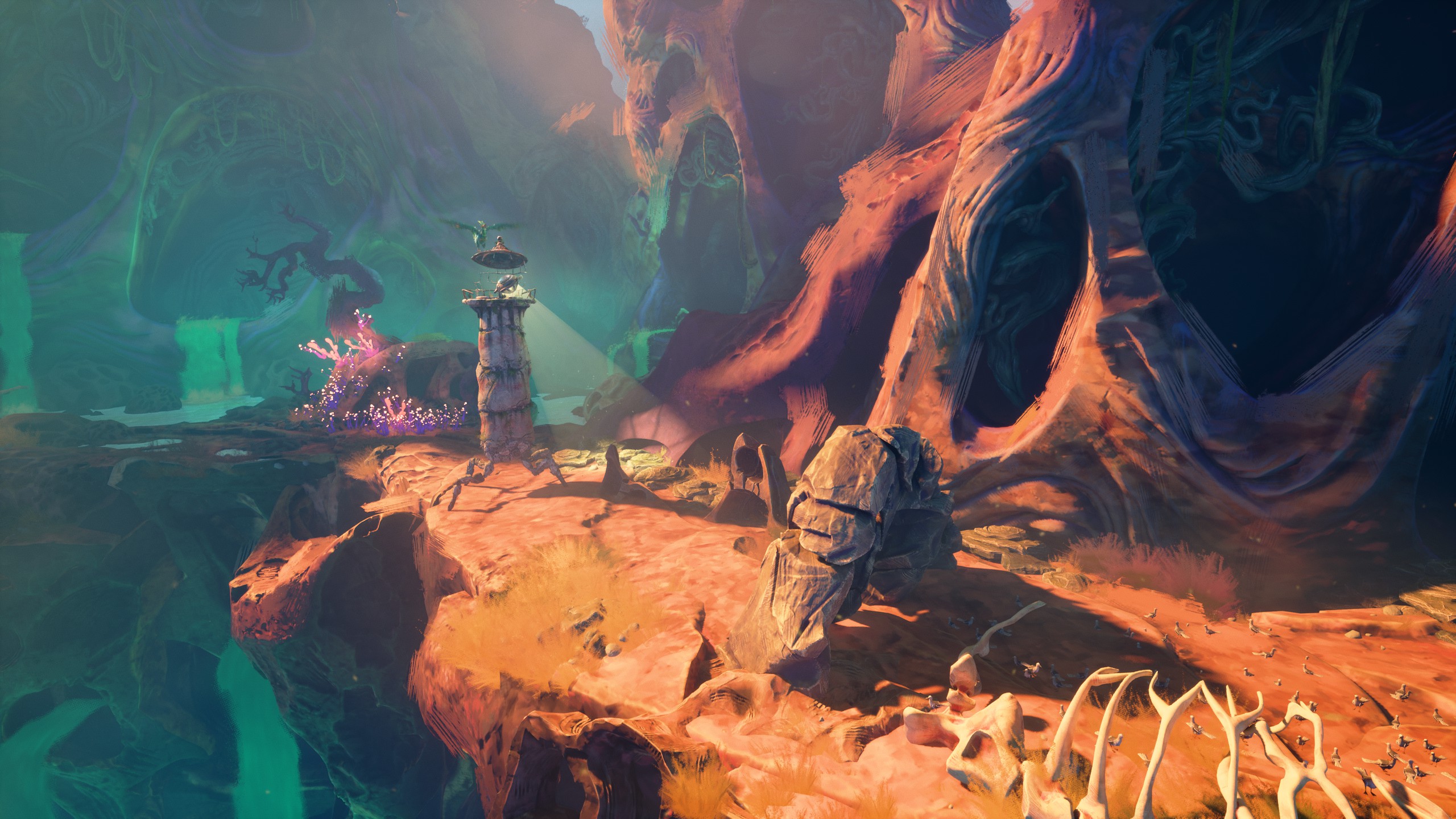 On an island in a long-lost sea, a forgotten lighthouse stands dormant in the shadow of a distant mountain peak. As withering tendrils spread and coalesce, it awakens. Taken with a mysterious sense of purpose and joined by a spirited seabird, it embarks upon a heartening tale of unlikely companionship, an odyssey of mystifying metamorphosis, and an unexpected journey towards the center of the island, into realms beyond understanding.