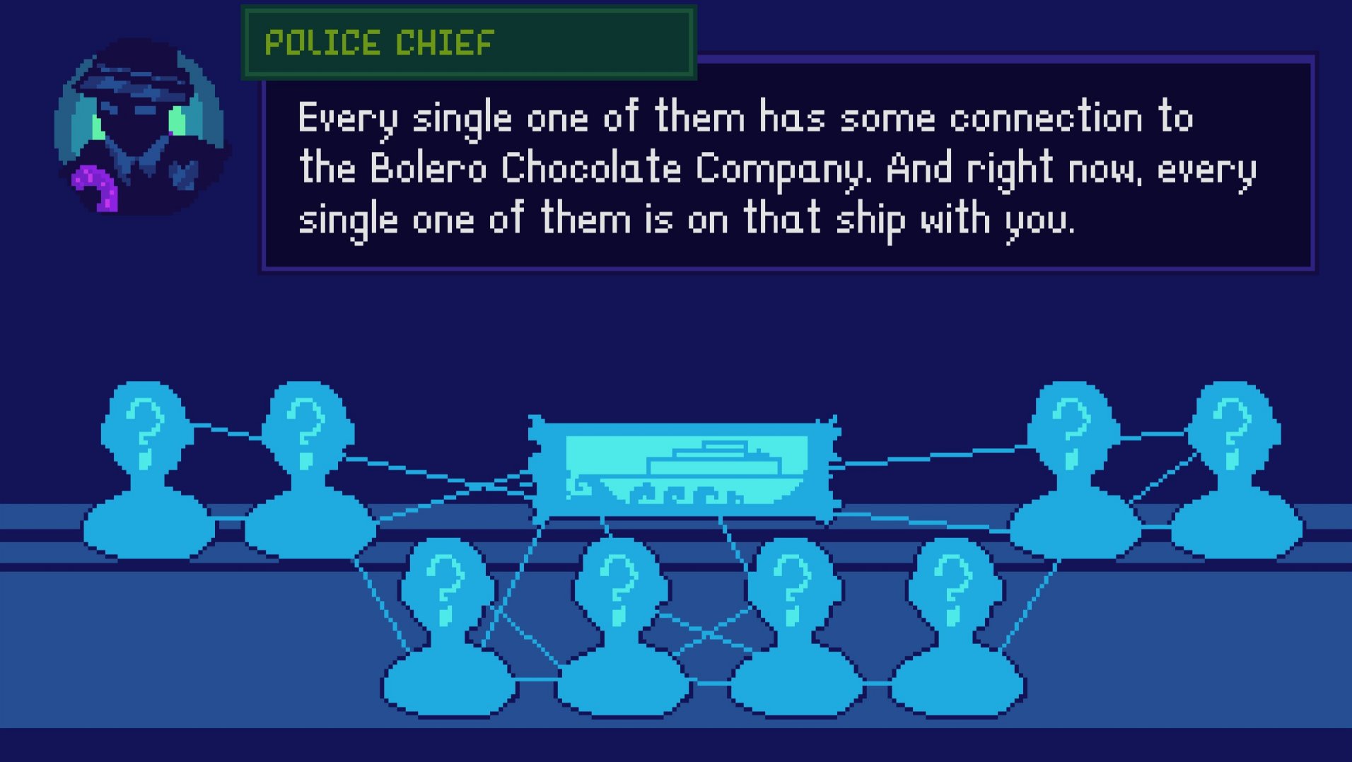 It’s August 9th, 1986. You are Detective Gene Burning, sent undercover aboard a private cruise ship to solve a murder. Your only way in? Pose as the ship’s recreational ballroom dance teacher. Your job is to investigate the murder of Stephanie Delafontaine, chief science officer of the Bolero Chocolate Company. Suspects will waltz, tango, and cha-cha-cha their way into exposing their darkest secrets. Create custom choreographies, uncover hidden clues, and make deductions to reveal the real killer. Because sometimes the truth only comes out on the dance floor.