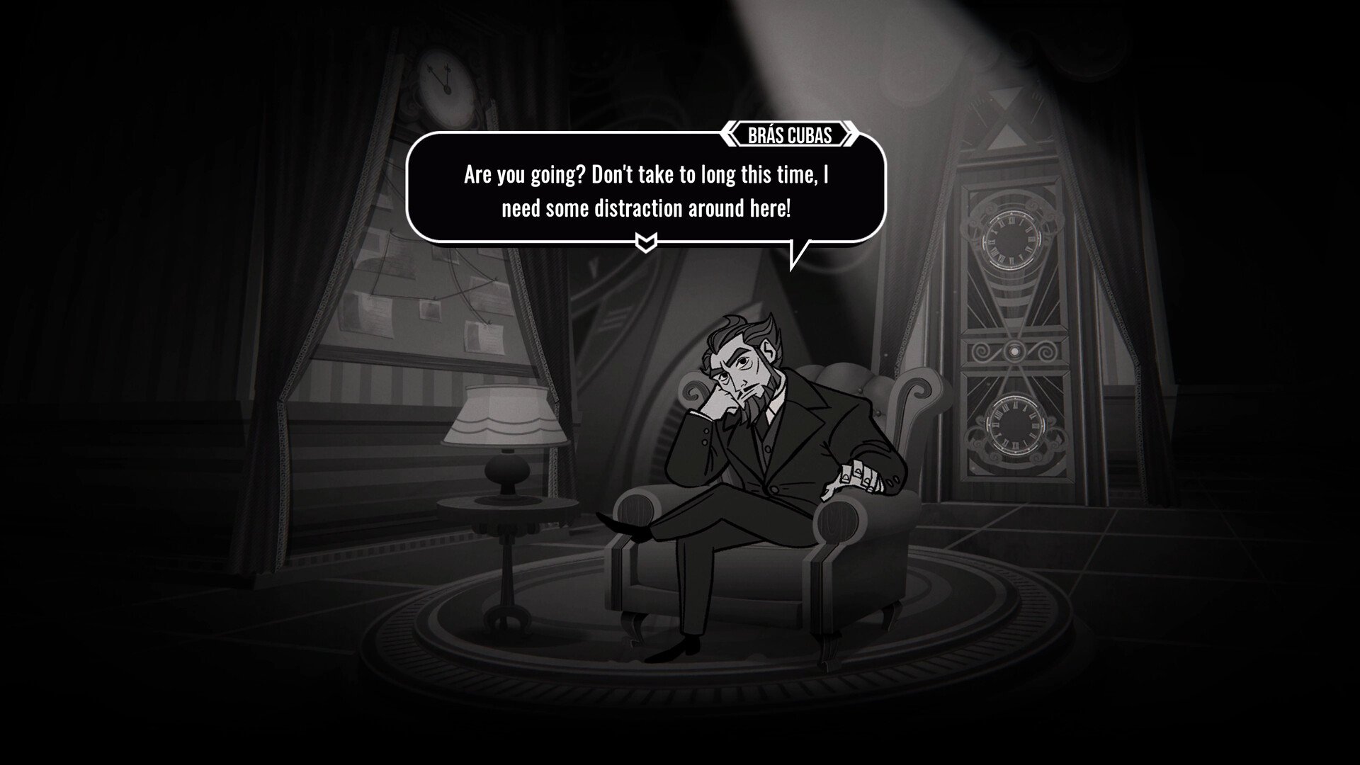 You've been hired by Brás Cubas, an influential entrepreneur of twentieth-century Rio de Janeiro, to find the culprit behind his own death. Even from beyond, Brás won't let you move on until you solve the case. He has imprisoned you in a time loop against your will, but you can use it to your benefit. On the day after the victim's demise, friends and foes alike may exhibit... "peculiar" behavior. You can follow them, learn their actions, and use the acquired information to confront them. In some cases, this can even cause them to deviate from their known routine. What critical events can occur when pushing for the truth? Find out all of the possibilities!