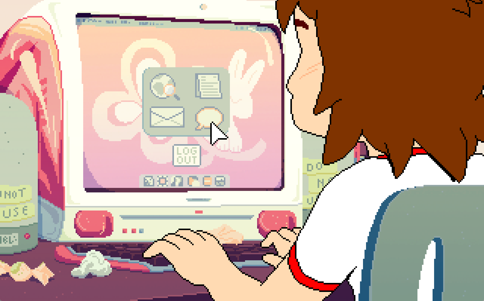 With so much of Mara’s life focused on writing, it makes sense that the gameplay would follow suit. Most in-game days come with a particular writing assignment that Mara is focused on, so the bulk of the puzzles center on Station to Station’s unique writing mechanic. When it’s time to write, you’ll sit Mara down at the nearest computer and open up the word processor, which takes you to the assignment/topic menu; there you’ll select your primary and secondary topics for a given assignment. If Mara’s been asked to write about an experience she had at a local concert, for instance, you might choose “Music” as your primary topic and “The City” as your secondary—or vice-versa, if you thought that was more appropriate.