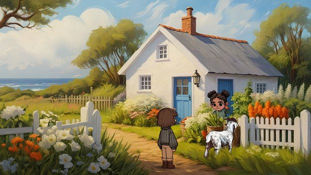 This 2D adventure follows Luna, daughter of the keeper of the nearby lighthouse, as she helps her Poppa out with keeping the beacon lit. She is soon to formally come of age in the grand town ceremony and dreams of being more than just the daughter of a lighthouse keeper. But for now, in going down to the town to find oil to light the lamp, Luna meets interesting villagers she knows well, including Lily the general store owner, Raft the ferryman, and her best friend Lila. Lila has a pet goat named Ghee-Ghee who starts off one of the first easily solved puzzles in the game.