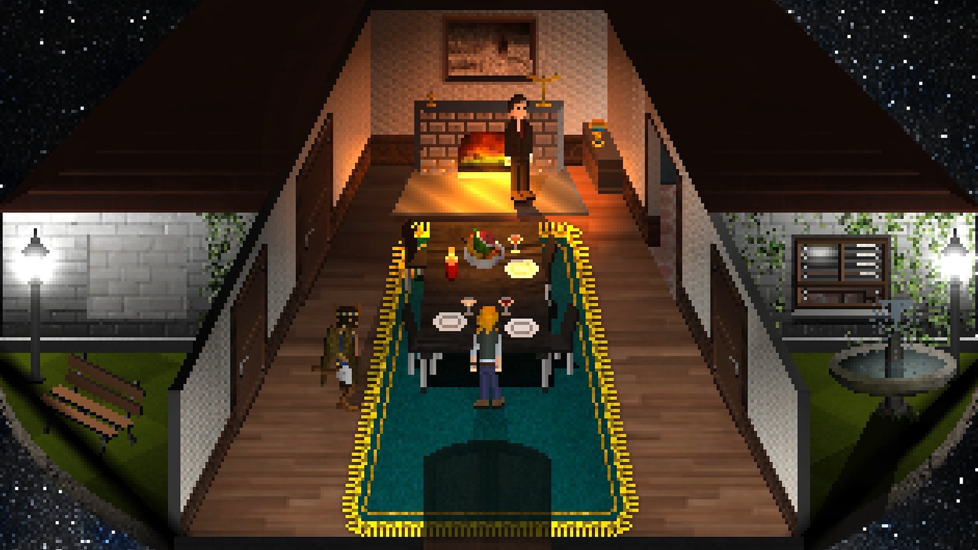 Dialogue is displayed in text boxes with no voice acting. Amy usually has a series of questions she can ask, leading down branching avenues and revealing information that she’ll carry with her into the next dream. I ran into a few translation errors while playing the English version, but none are overly jarring so it was easy to just pass over them. At any time you can change the way text is displayed, with two fonts to choose from: a classic one that matches the pixel art graphics, which I chose for nostalgia’s sake, or a smooth font for easier readability. In addition, you can adjust the dialogue speed.