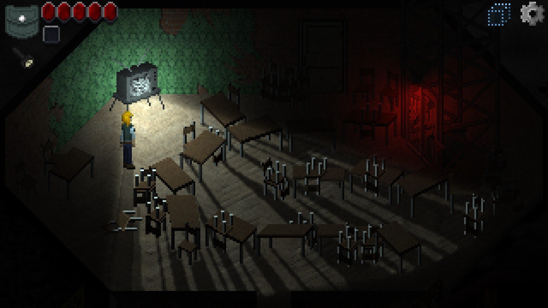 Amy will pick up makeshift weapons and shields, highlighted in the environment, all with randomized durability. There’s an interesting trick to durability, though. Amy can focus her mind, which allows her to manifest items she has picked up in a previous dream, so if something breaks, she can just think up a new one, even during combat. This includes things like crowbars and screwdrivers that can both serve as weapons and help you get into containers or tight spaces. Other helpful items she can manifest include health drinks, first aid kits, coins to try her luck in vending machines, and shields for defense.