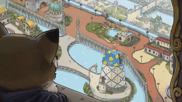 Likewise, the series’ signature cuteness has gotten even cuter! The city of Shirin is as anthropomorphic as ever, with all-new critters to interact with: bear bakers, dog doctors, toucan archeologists, and more. The visual novel portions of the game feature updated versions of the large, chibi-style character portraits from last time. Nairi and her usual sidekicks, Rex the scholarly rat and Sayo the sarcastic girl-thief, as well as the rest of the cast, cycle through a handful of expressions that reinforce their defining personality traits: Sayo makes a lot of scheming faces, and Rex likes to point a knowing finger in the air while he talks.